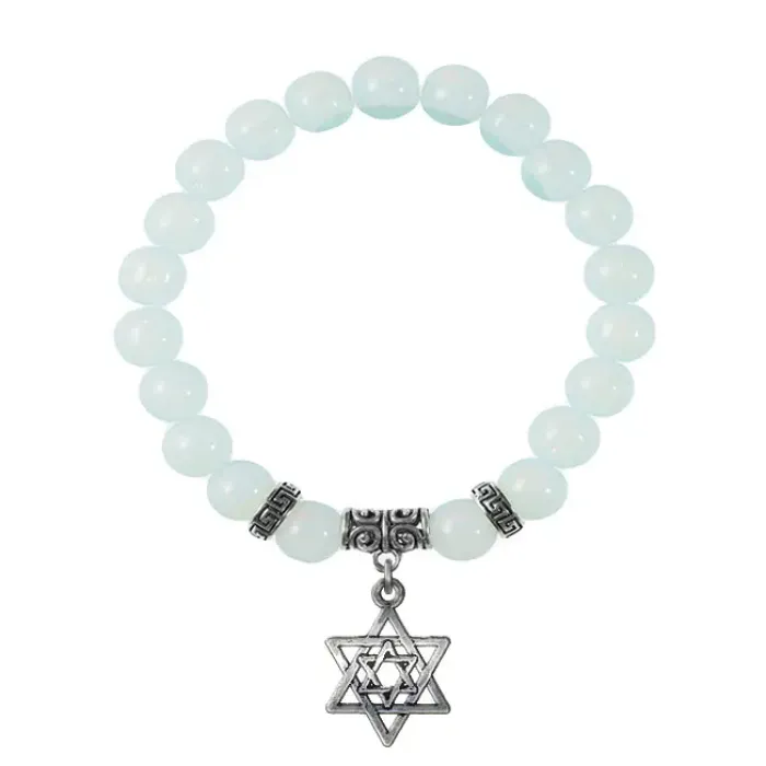 Браслет-амулет из синтетического опалита (лунного камня) с подвеской в виде Звезды Давида.