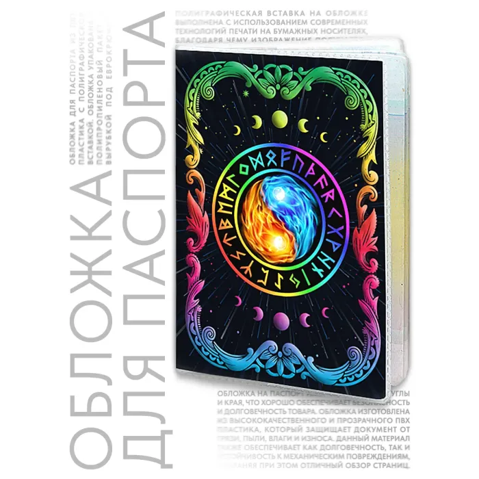 Обложка для паспорта из прозрачного ПВХ-пластика с полиграфической вставкой — это не только практичный аксессуар, но и символ гармонии. Изображение Инь-Ян на обеих сторонах обложки олицетворяет созидательное единство противоположностей во Вселенной, что делает её мощным талисманом счастья и защиты. Упаковка в полипропиленовый пакет с вырубкой под еврокрючок обеспечивает удобство хранения и транспортировки. Такой подарок станет отличным выбором для ценителей восточной философии и символики.