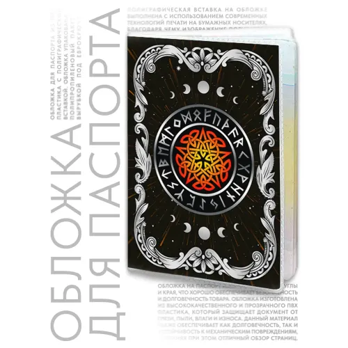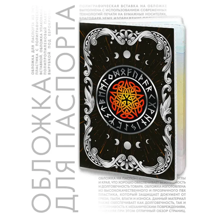 Обложка для паспорта из прозрачного ПВХ-пластика с полиграфической вставкой, которая станет стильным и защищённым аксессуаром. Она упакована в полипропиленовый пакет с вырубкой под еврокрючок, что делает её удобной для хранения и продажи. Обе стороны обложки имеют одинаковое изображение пентаграммы — символа, известного своей защитной силой. Пентаграмма традиционно используется как амулет, помогающий контролировать сверхестественные силы и защищающий от зла и черной магии. Этот товар не только практичен, но и наполнен глубоким смыслом.