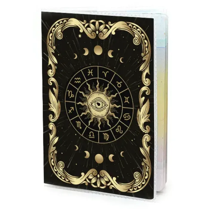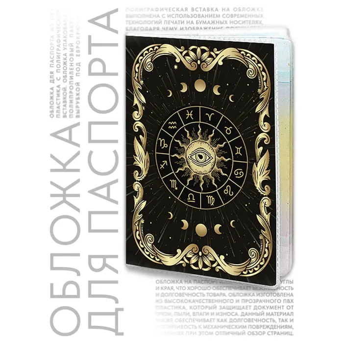 Обложка для паспорта из прозрачного ПВХ-пластика с двусторонним изображением астрологической мандалы.