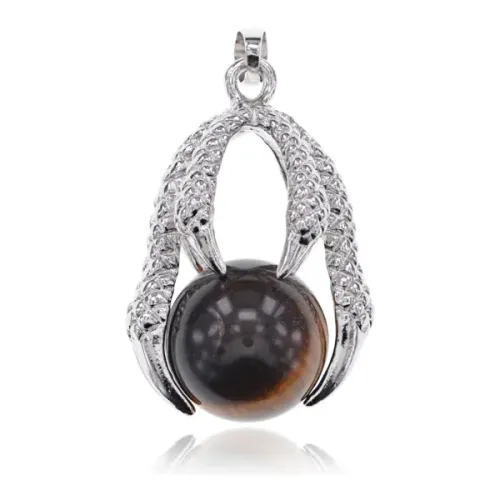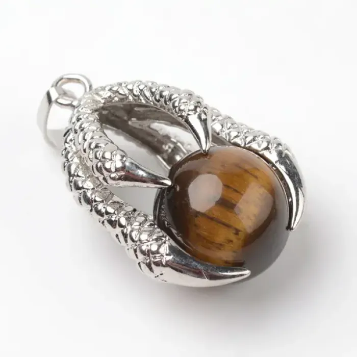 Кулон в виде когтя дракона из бижутерного сплава с вставкой из натурального камня тигровый глаз.