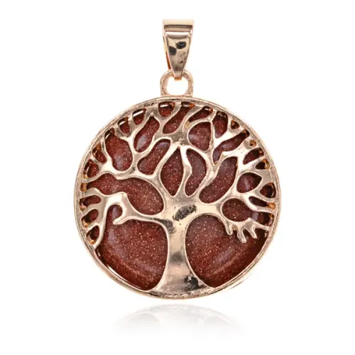 Кулон Дерево жизни, d.2,7см, Коричневый авантюрин BJK215-03