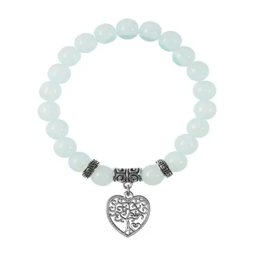 Браслет-амулет из синтетического лунного камня (опалита) с подвеской в виде дерева.