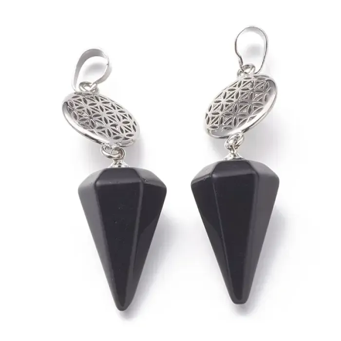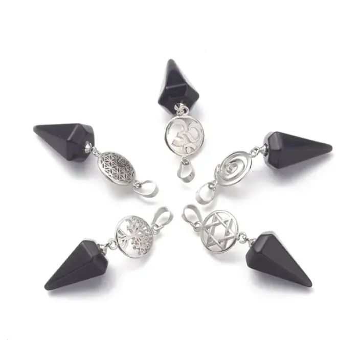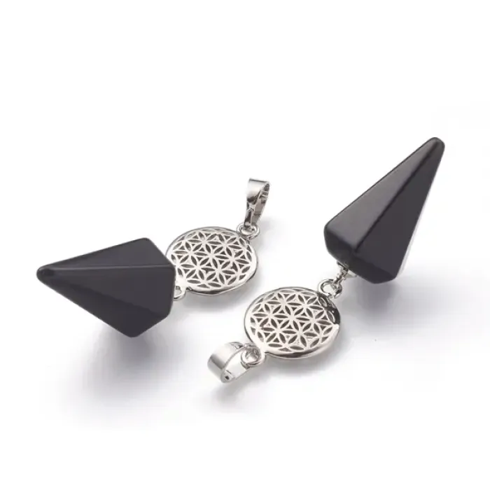 Маятник для биолокации Кристалл с камнем Черный агат BLK033-04