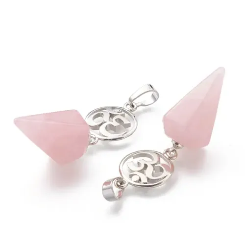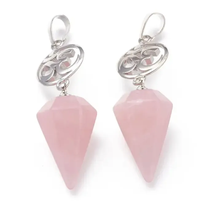 Маятник для биолокации Кристалл с камнем Розовый кварц BLK033-06