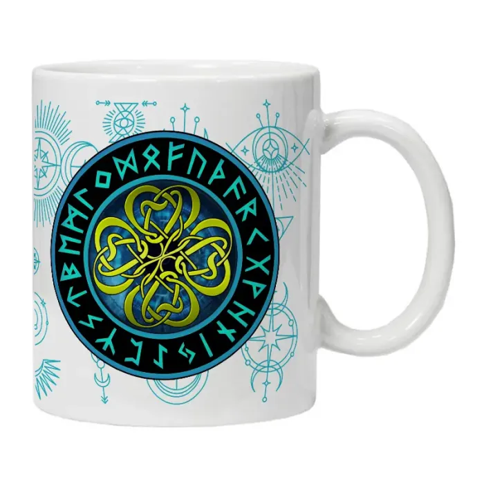 Конструкция кружки включает удобную ручку для комфортного использования. Изображение нанесено на внешнюю поверхность, что позволяет сохранить внутреннюю часть гладкой и удобной для мытья.
