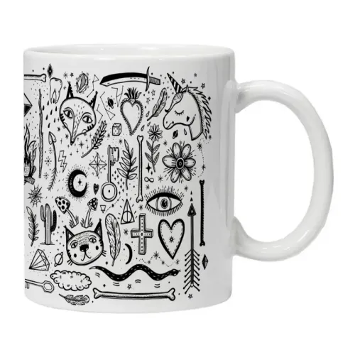 Корпус кружки выполнен из керамики, что обеспечивает термостойкость и гигиеничность. Внешняя поверхность декорирована устойчивым к истиранию рисунком. Форма с классической ручкой обеспечивает удобный захват.