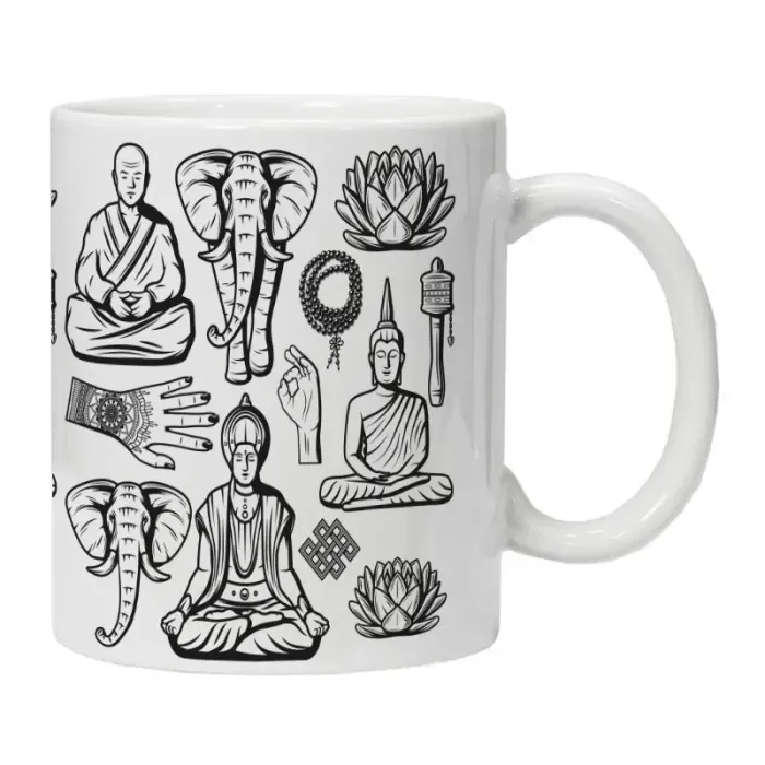 Конструкция кружки включает удобную ручку для комфортного использования. Изображение нанесено на внешнюю поверхность, что определяет декоративные свойства товара.