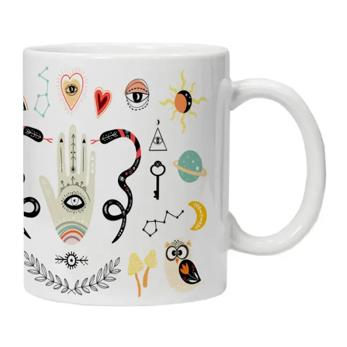 Кружка изготовлена из керамики, материала, устойчивого к высоким температурам и обеспечивающего сохранение тепла напитка. На поверхность нанесено декоративное изображение.