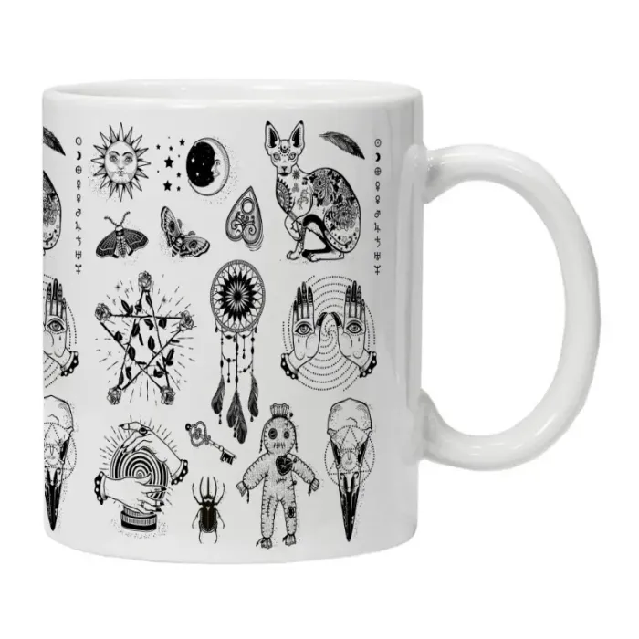 Кружка предназначена для подачи горячих и холодных напитков. Изделие относится к серии «Темная магия» и имеет тематическое изображение на поверхности.