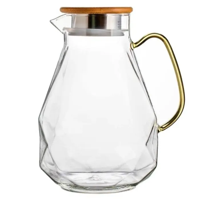 Кувшин стеклянный Бриллиант с желтой ручкой и бамбуковой крышкой 2.1 л