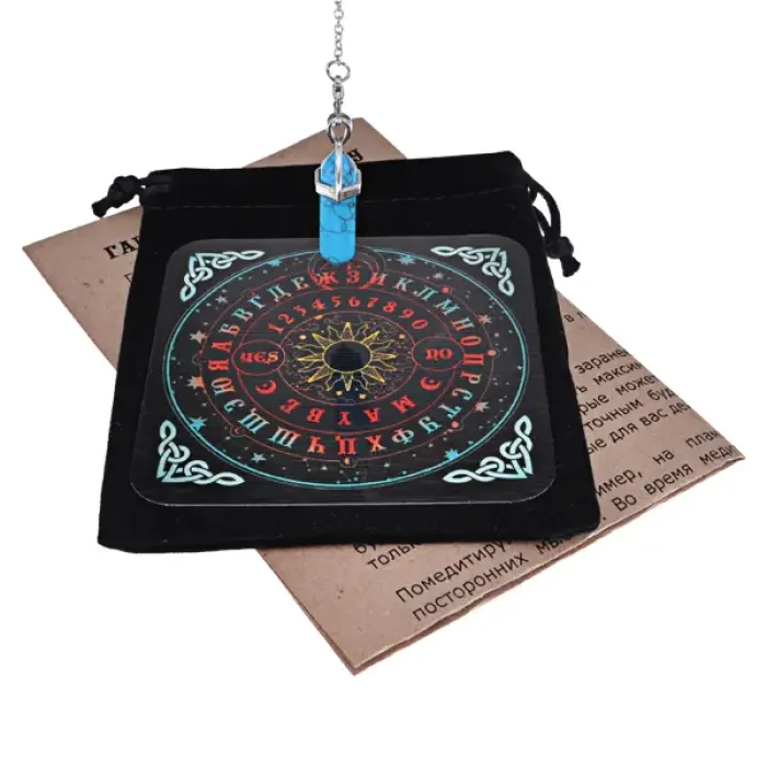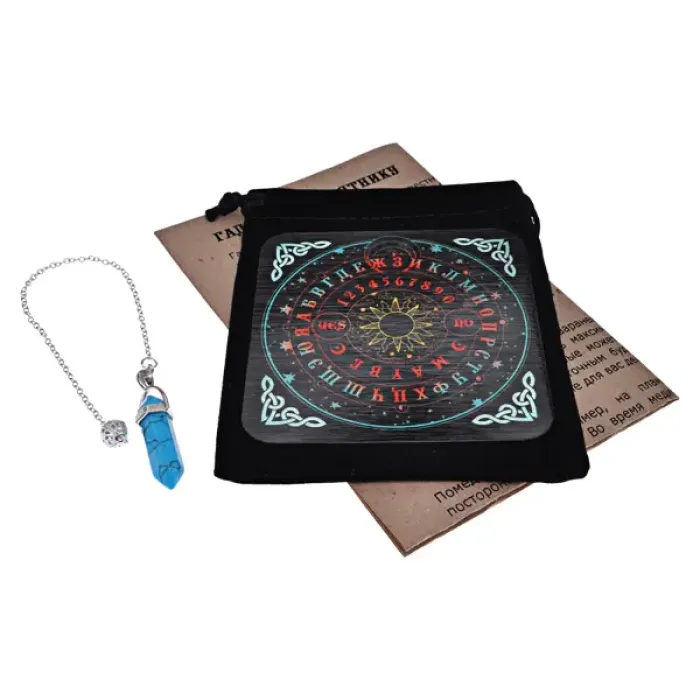 Набор для гадания с маятником Бирюза OUN004 — это уникальный инструмент, который сочетает в себе элементы мистики и традиционного подхода к предсказанию. В его состав входит биолокационный маятник из синтетической бирюзы, известной своими успокаивающими свойствами. Основные особенности набора: