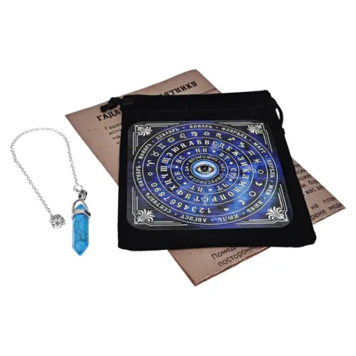 Размеры и комплектация: В набор входят маятник, табличка для гадания, бархатный мешочек для хранения и инструкция.