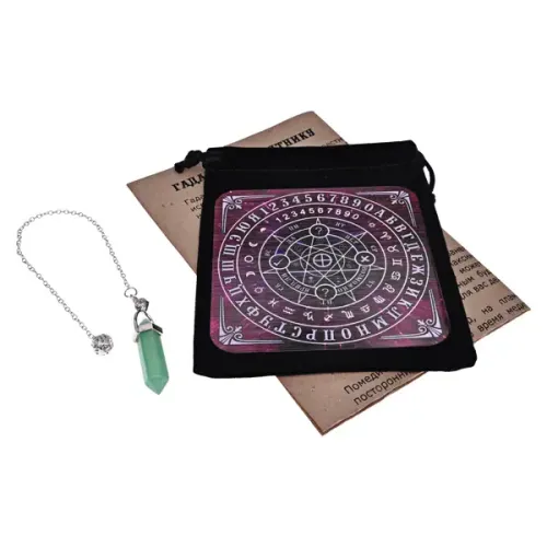 Набор для гадания с маятником из натурального нефрита — это уникальный инструмент, который традиционно используется для получения ответов на важные вопросы и принятия решений. В комплект входят биолокационный маятник с цепочкой, табличка для гадания, бархатный мешочек для хранения и инструкция по использованию.