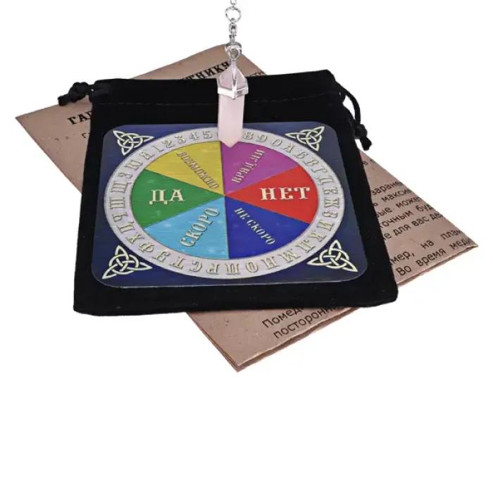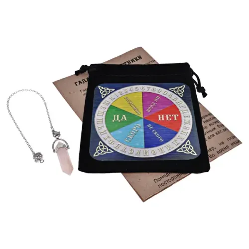 Набор для гадания с маятником из розового кварца — это уникальный инструмент, который помогает в поиске ответов на важные вопросы. Розовый кварц традиционно ценится за свою способность привносить гармонию и любовь в жизнь. В состав набора входит биолокационный маятник из натурального розового кварца, цепочка, табличка для гадания и бархатный мешочек для хранения. Инструкция по гаданию поможет освоить технику использования маятника и раскрыть его потенциал. Упаковка выполнена в виде полипропиленового пакета с европодвесом, что делает набор удобным для подарка или личного использования.