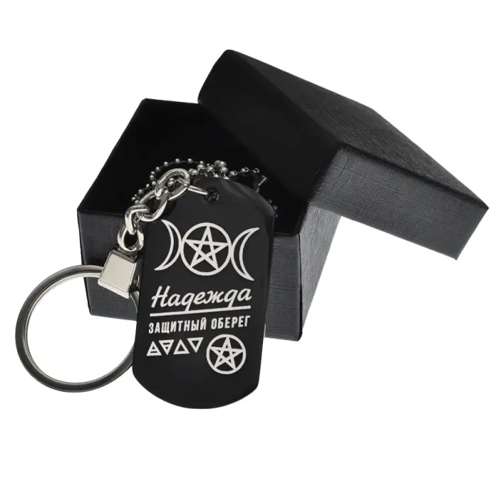 Именной амулет «Надежда» — жетон из полированной нержавеющей стали с чернением и гравировкой.
