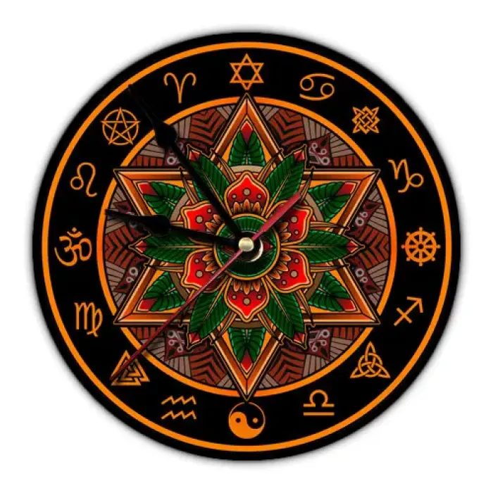 Настенные часы с циферблатом диаметром 20 см. Дизайн выполнен в стиле мандалы.