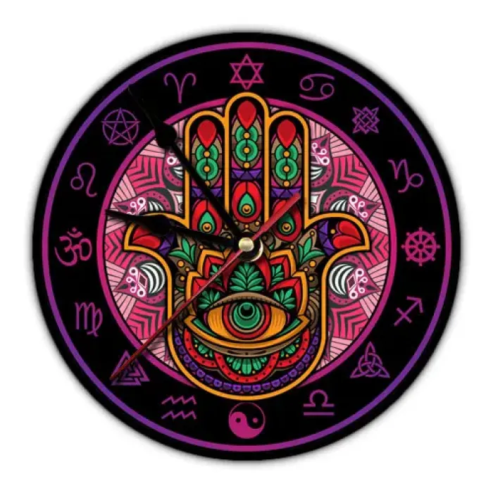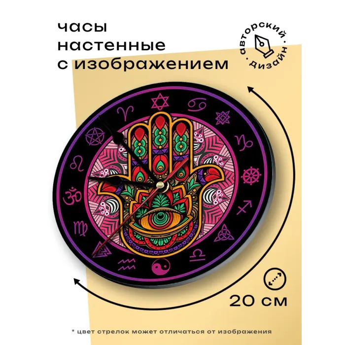 Настенные часы с дизайном Хамса. Циферблат изготовлен из вспененного пластика ПВХ, изображение нанесено методом аппликации.