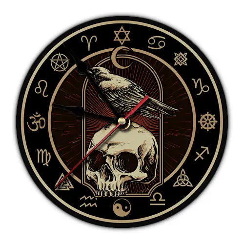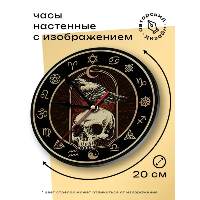 Настенные часы с изображением ворона на черепе. Циферблат диаметром 20 см изготовлен из вспененного пластика ПВХ.