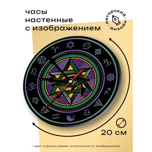 Настенные часы "Глаз Гора" — это стильный элемент декора, который привнесет оригинальность в любое помещение. Циферблат диаметром 20 см выполнен из легкого вспененного пластика ПВХ, что делает его не только привлекательным, но и практичным. Удобная петля позволяет легко повесить часы на стену, а метод нанесения изображения наклейкой обеспечивает яркость и долговечность дизайна.