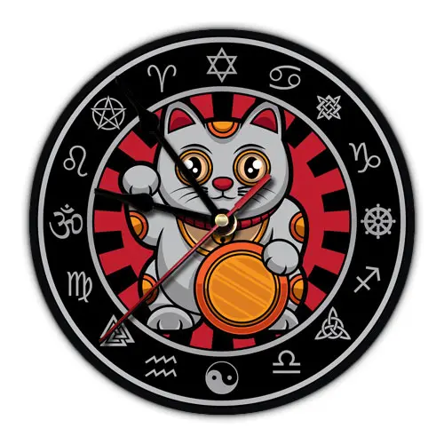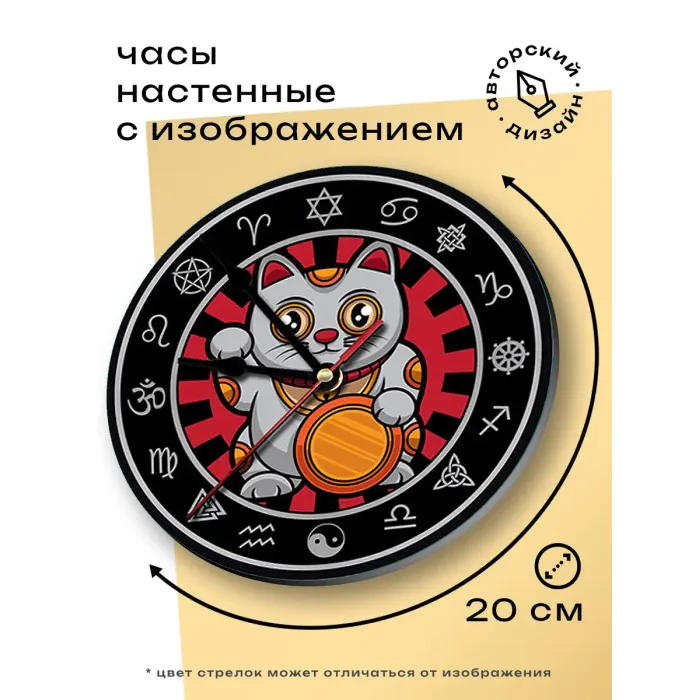 Настенные часы с изображением Манеки-Неко. Изготовлены из вспененного пластика ПВХ, циферблат диаметром 20 см.