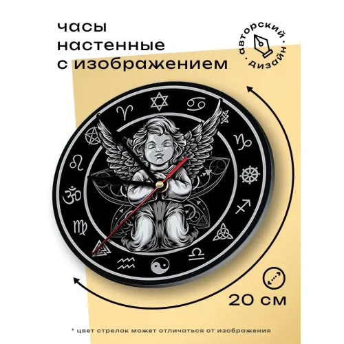 Настенные часы "Ангел-хранитель" — это не только функциональный предмет интерьера, но и символ защиты и покровительства. Циферблат диаметром 20 см выполнен из легкого вспененного пластика ПВХ, что делает его идеальным для любого помещения. Часы имеют петлю для удобного подвешивания на стену, а изображение нанесено методом наклейки, что обеспечивает яркость и долговечность. Упакованы в картонную коробку, что делает их отличным вариантом подарка. Обратите внимание, батарейка АА в комплект не входит.