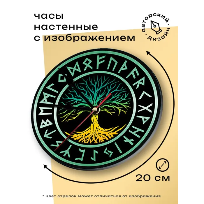 Настенные часы с изображением дерева жизни. Циферблат диаметром 20 см выполнен из вспененного пластика ПВХ, изображение нанесено методом аппликации.