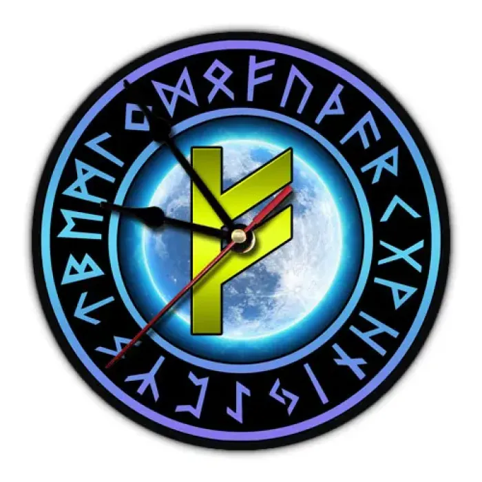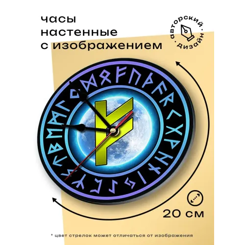 Настенные часы Руна Феху — это стильный и оригинальный элемент декора, который добавит уникальности любому интерьеру. Циферблат диаметром 20 см выполнен из лёгкого вспененного пластика ПВХ, что делает его удобным для подвешивания на стене благодаря специальной петле. Изображение на циферблате нанесено методом наклейки, что обеспечивает яркость и долговечность. Часы упакованы в картонную коробку, что делает их отличным подарком для ценителей искусства и символики. Обратите внимание: батарейка АА в комплект не входит.