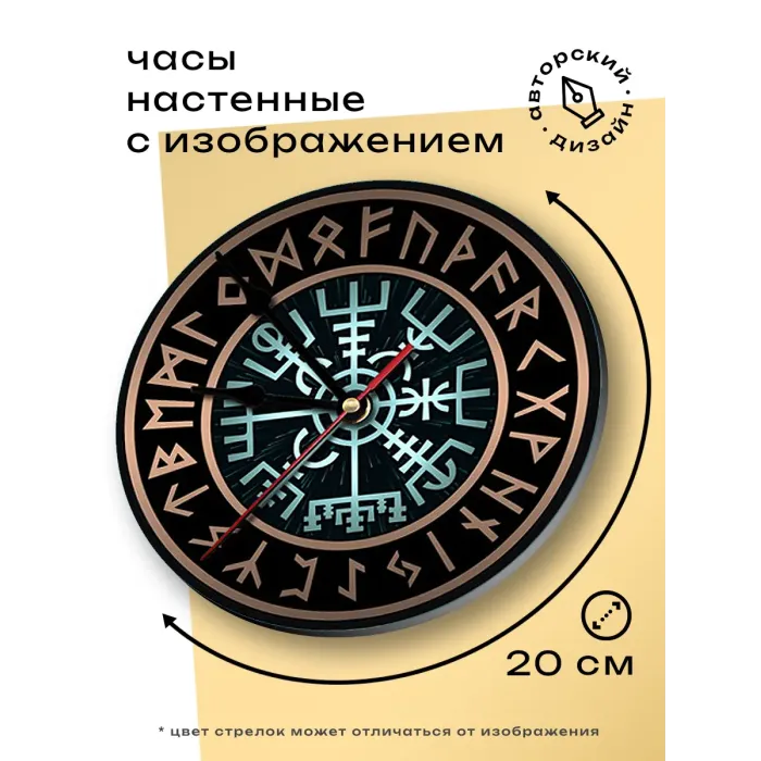 Настенные часы с циферблатом диаметром 20 см. Материал — вспененный пластик ПВХ, изображение нанесено методом наклейки.