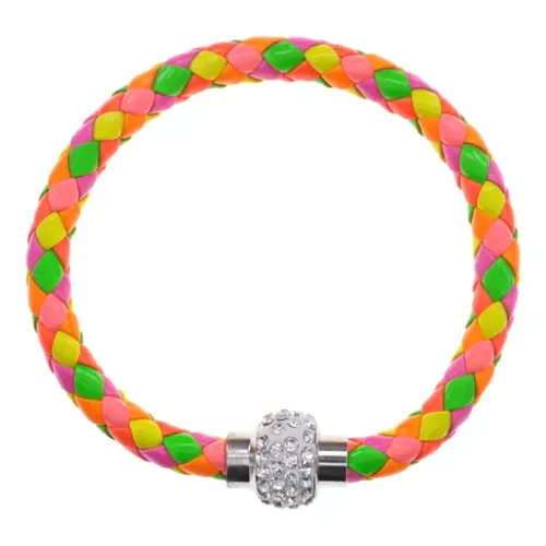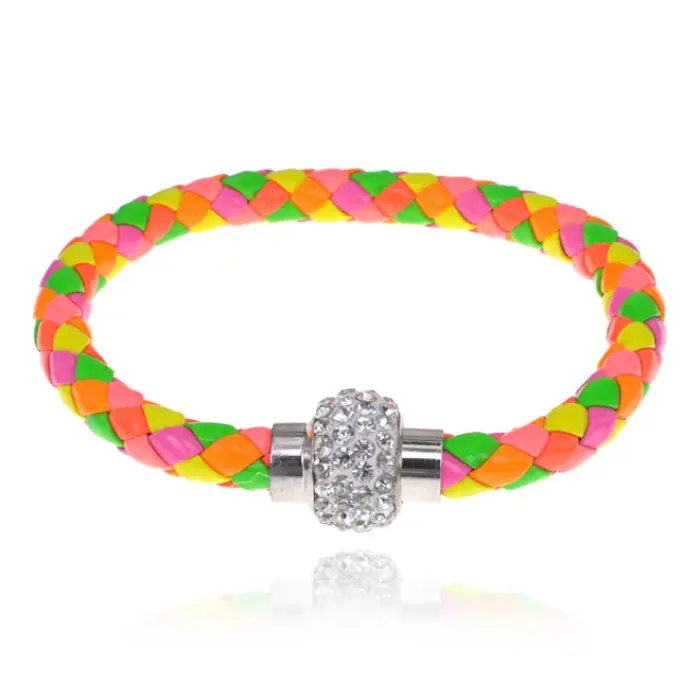 Кожаный браслет с магнитным замком со стразами, разноцветный BS001-CO