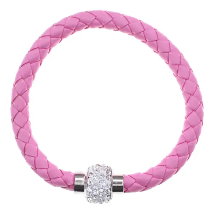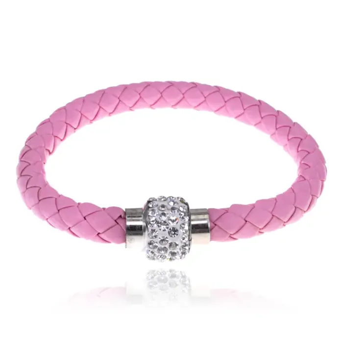 Кожаный браслет с магнитным замком со стразами, цвет нежно-розовый BS001-LP