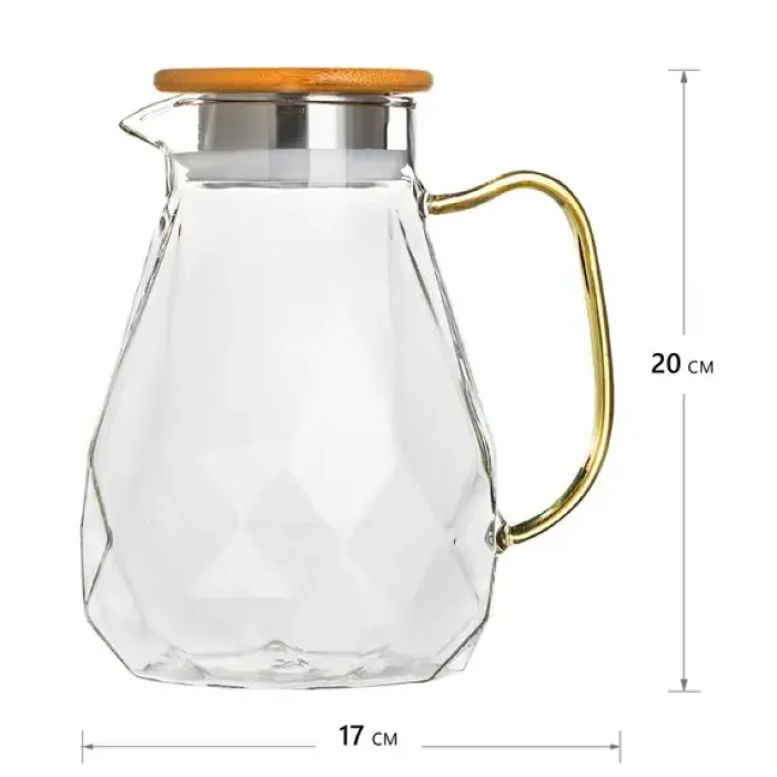 Кувшин стеклянный Бриллиант с желтой ручкой и бамбуковой крышкой 1.5 л