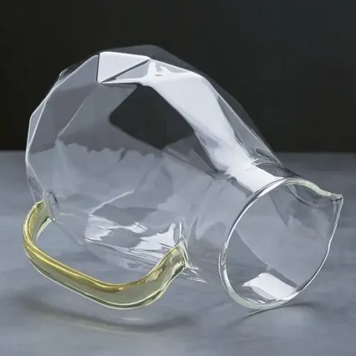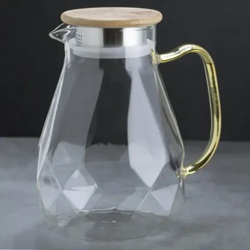 Кувшин подходит для ежедневного использования и сервировки. Его дизайн позволяет сочетать с другой стеклянной посудой или предметами с деревянными акцентами. Фактурная поверхность и цветной элемент ручки делают его универсальным для различных стилей интерьера.