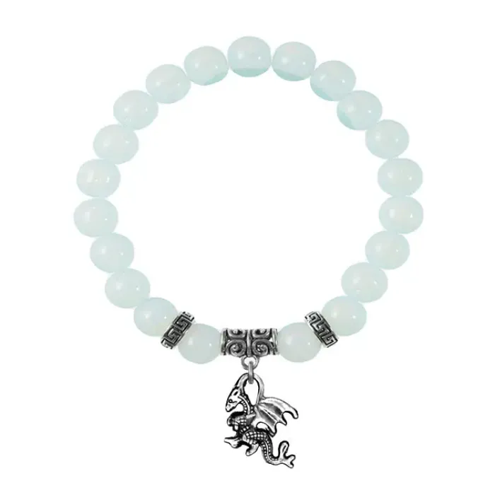 Браслет-амулет из синтетического камня опалит с подвеской в виде дракона.