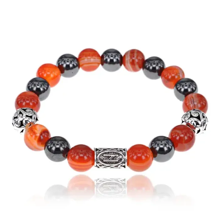 Магнитный браслет с руной Хагалаз и нат.камнем Сердолик BSR1-04