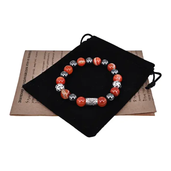 Магнитный браслет с символом руны Хагалаз и натуральным камнем сердолик.