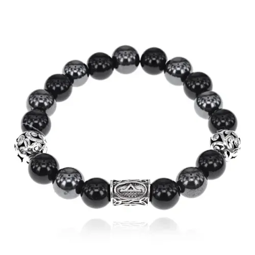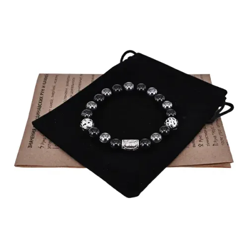 Магнитный браслет с руной Турисаз и нат.камнем Черный агат BSR1-09