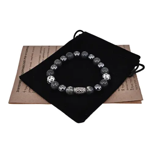 Размеры и комплектация: Внутренний диаметр около 5,5 см, бусины диаметром 10 мм. В комплекте бархатный мешочек и буклет с описанием.