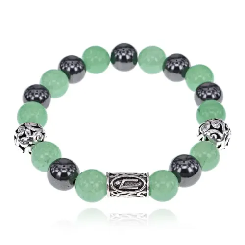 Этот рунический стрейч-браслет, выполненный из натурального камня нефрит и магнитного гематита, сочетает в себе красоту и силу. Руна Уруз символизирует страсть и энергию, укрепляя волю и активизируя внутренние силы. Нефрит, известный своей добротой и способностью к состраданию, приносит мужество, терпение и семейное счастье. Браслет имеет внутренний диаметр около 5,5 см с бусинами диаметром 10 мм. В комплект входят бархатный мешочек для хранения и буклет с описанием значений рун и камней. Упакован в прозрачный пакет с еврослотом для удобства хранения или подарка.