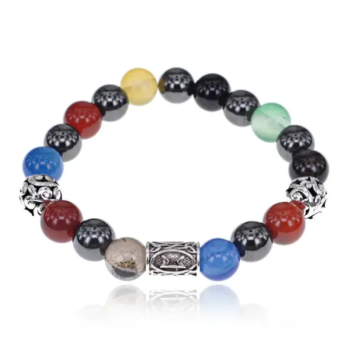 Магнитный браслет с руной Перт и нат.камнем Цветной агат BSR1-14