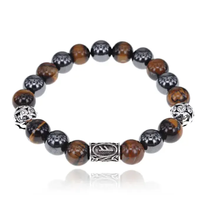 Магнитный браслет с руной Феху и нат.камнем Тигровый глаз BSR1-17