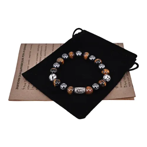 Магнитный браслет с символом руны Феху и натуральным камнем.