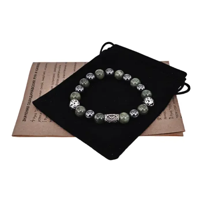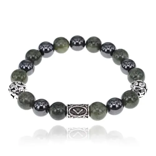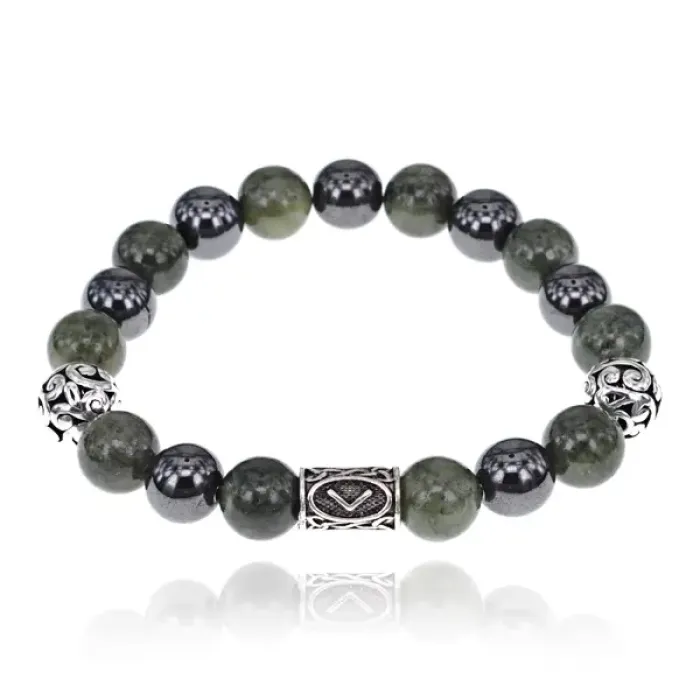 Магнитный браслет с руной Кеназ и нат.камнем Тайский нефрит BSR1-19