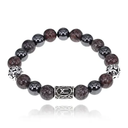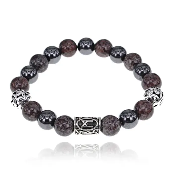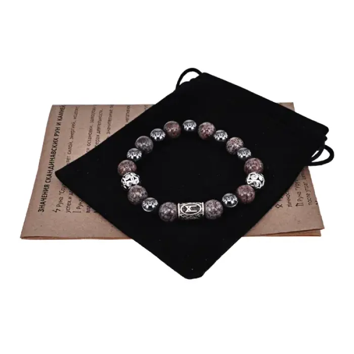 Магнитный браслет-сувенир из натурального камня и магнитного гематита с руной Манназ.