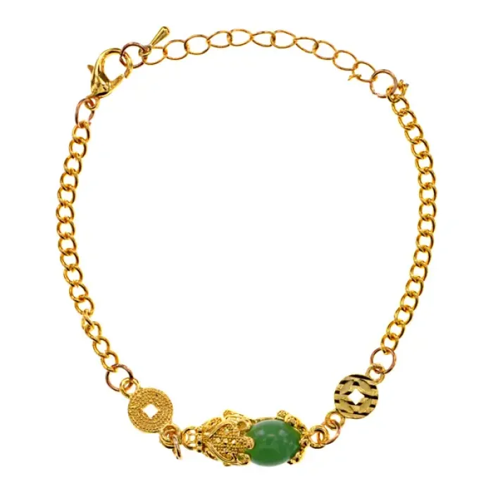 Бижутерный браслет с подвесками в виде слона и двух монет.
