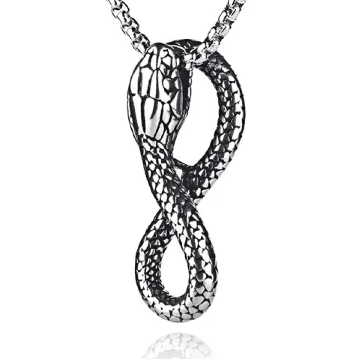 Амулет в форме кобры из бижутерного сплава с покрытием под серебро.