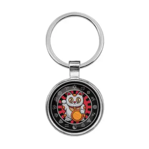 Брелок-сувенир Манеки-Неко из бижутерного сплава со стеклянной линзой.