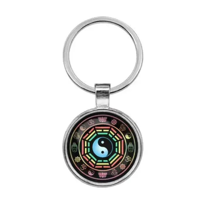 Брелок Ба-Гуа — это стильный аксессуар, который сочетает в себе элегантность и символику. Этот брелок традиционно используется как амулет для привлечения удачи и гармонии в жизни. Изготовленный из бижутерного сплава с покрытием под серебро, стали и стекла, он обладает прочностью и привлекательным внешним видом.