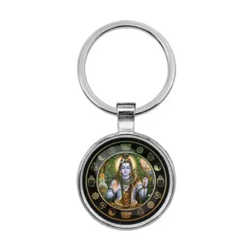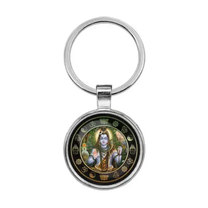 Брелок из бижутерного сплава и стали с покрытием под серебро. Изображение защищено выпуклой стеклянной линзой.