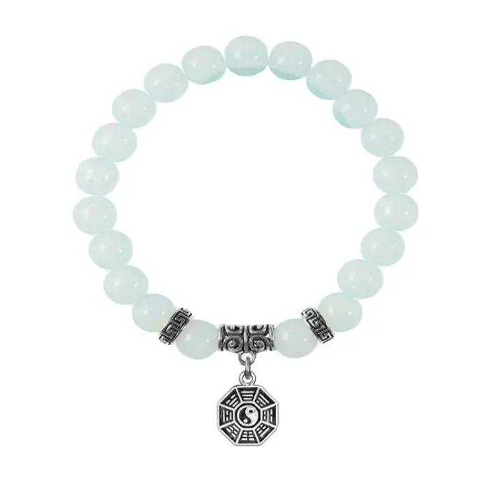 Браслет-амулет Багуа из синтетического лунного камня (Опалит) с подвеской из бижутерного сплава.